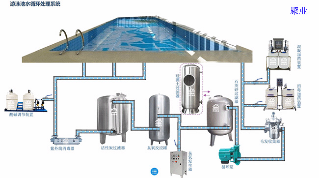5、泳池消毒設備。泳池消毒設備也是一個游泳池的基本配置之一,游泳池水處理很重要的一個環(huán)節(jié),直接影響泳池水質達不達標。聚業(yè)紫外線殺菌器,殺菌壽命長達9000小時,殺菌率能夠達到99.99%。
